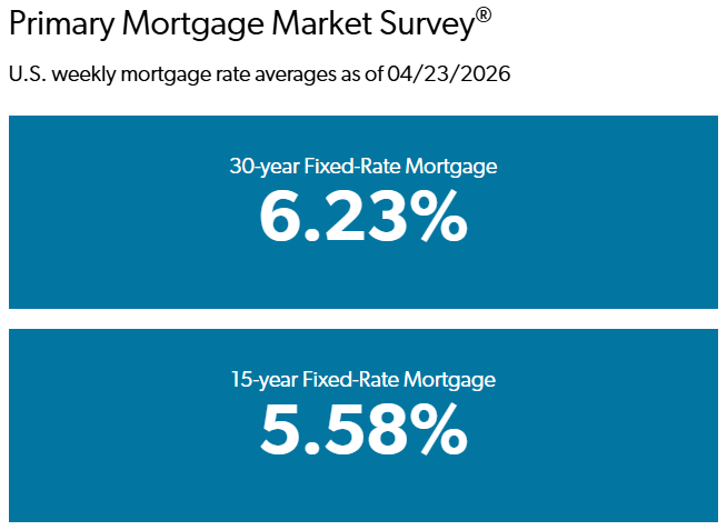 The 30-year fixed-rate mortgage averaged 6.23% as of April 23, 2026, down from last week when it averaged 6.30%. A year ago at this time, the 30-year FRM averaged 6.81%.