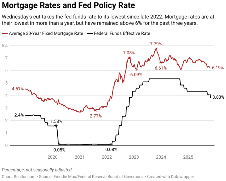 Wednesday's quarter-point cut was widely anticipated and already largely priced into mortgage rates, which have fallen in recent months and reached a one-year low of 6.19% last week, according to Freddie Mac.